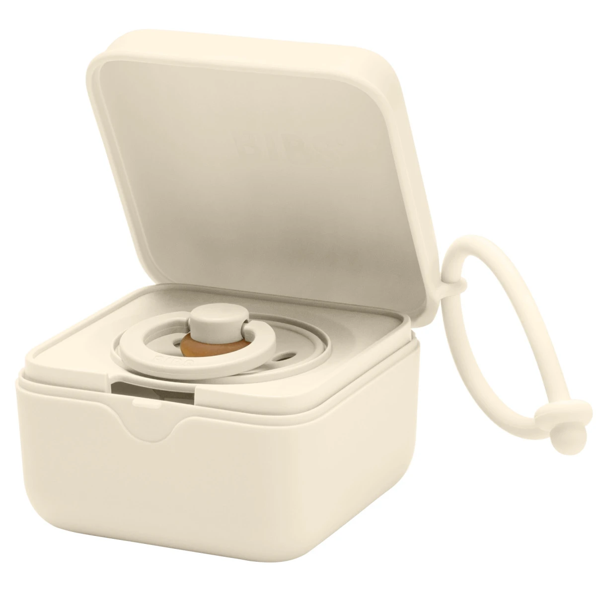Je draagt het doosje gemakkelijk overal naartoe dankzij de handige siliconen draagband. Het doosje is geschikt voor alle spenen van het merk BIBS.