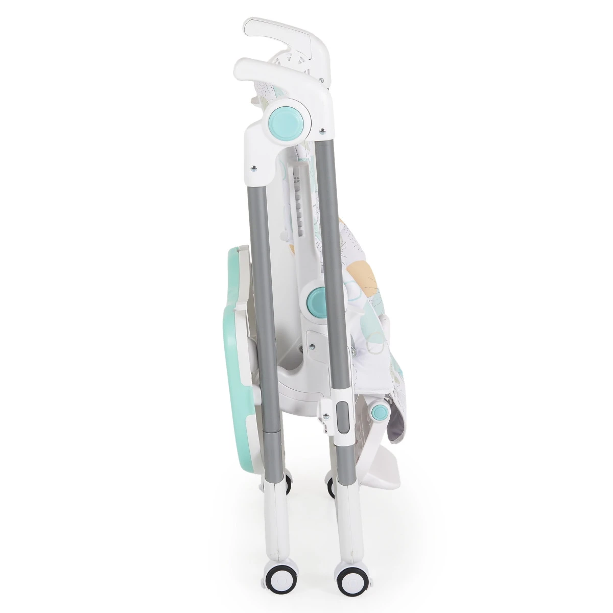 Heb je de stoel even niet in gebruik? Verplaats hem gemakkelijk met de wieltjes of klap hem compact in, zo berg je hem eenvoudig op! De stoel is geschikt voor kindjes die zelfstandig rechtop kunnen zitten (rond de 6 maanden) totdat je kindje 15 kg weegt.