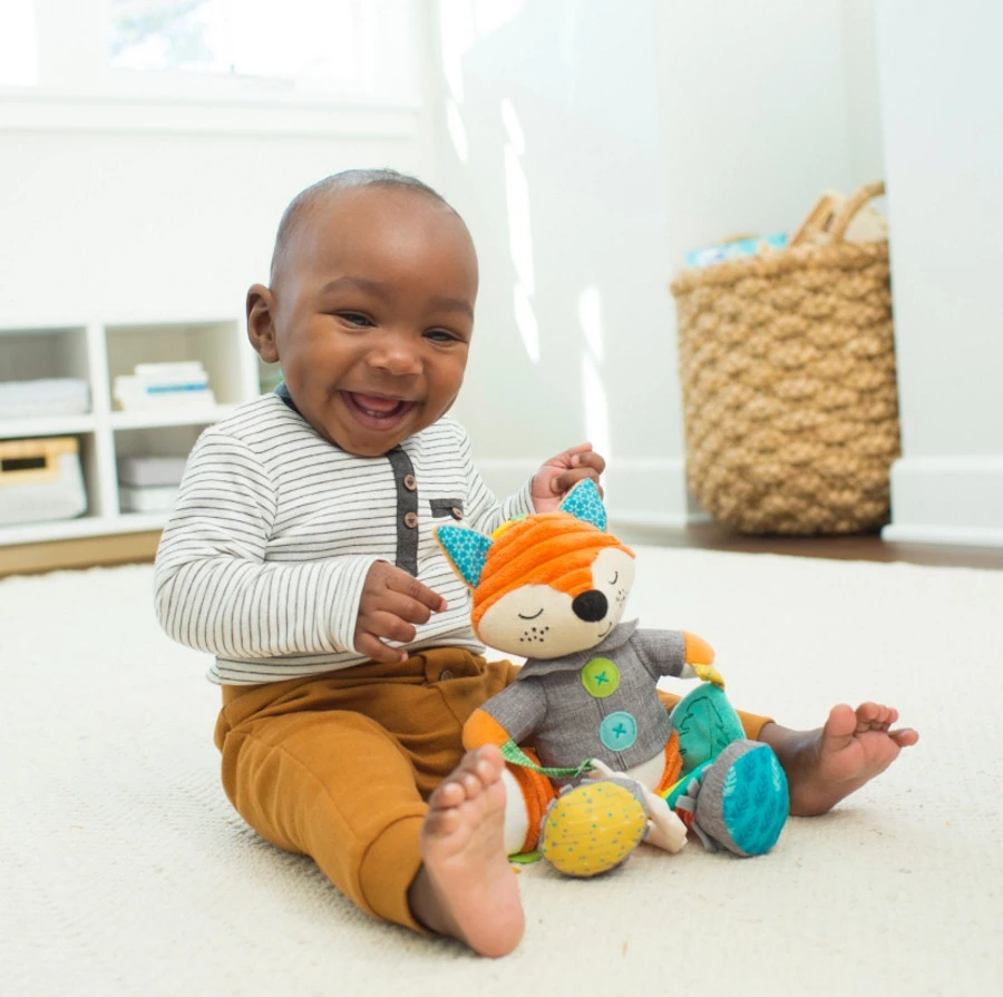 Wat een lief, kleurrijk en handig buggyspeeltje van Infantino uit de Go Gaga collectie! Het vosje is voorzien van verschillende texturen, bijtringen, en rammelende geluiden waardoor jouw kleine er uren mee bezig kan zijn.