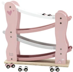 De autobaan is gemaakt van degelijk FSC hout en is roze, wit en grijs van kleur. Ook nog eens een leuke toevoeging voor de kinderkamer! Geschikt vanaf 18 maanden.