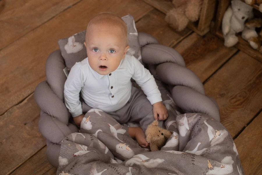 Bamboe katoen heeft veel goede eigenschappen. Allereerst houdt het je kleine warm in de winter en koel in de zomer. De stof is hypoallergeen, wat betekent dat zelfs de meest gevoelige kindjes goed tegen deze stof kunnen. Daarnaast is de bamboe stof antibacterieel en gaat het schimmel tegen.