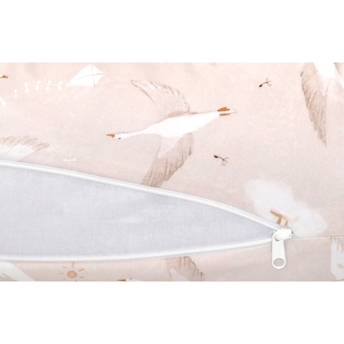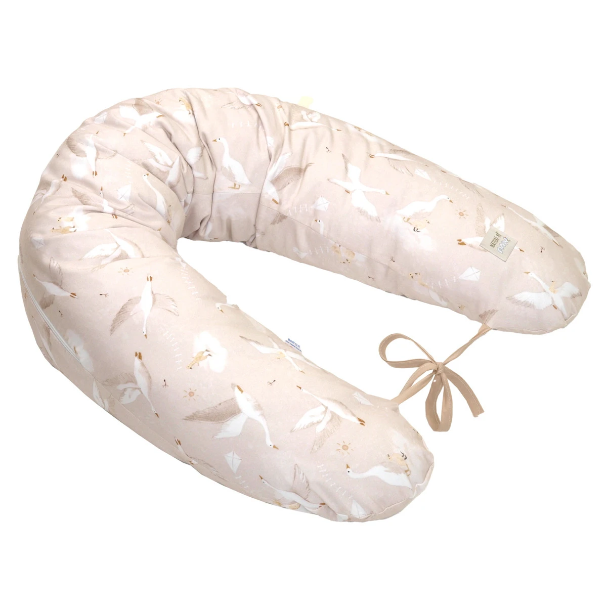 Het voedingskussen is voorzien van een afritsbare hoes die in de wasmachine op 40° gewassen kan worden. De lengte van het voedingskussen is 155 cm. Het voedingskussen heeft een mooie print met gansjes.