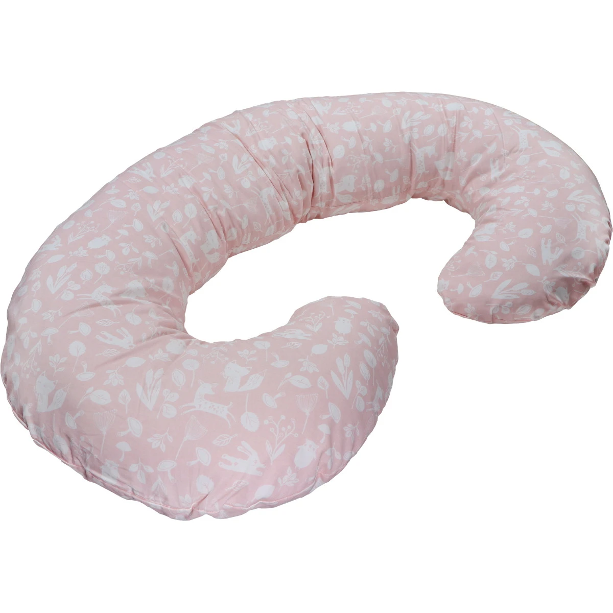 Het zwangerschaps- en voedingskussen heeft een leuke bloemen/dierenprint. De afneembare hoes, met de hand gewassen worden.