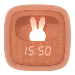 De wekker is tevens voorzien van een superschattig nachtlampje in de vorm van een lief, klein konijntje. De wekker is voorzien van een oplaadbare accu (micro USB, 5V) waarmee je tot 14 uur lang voorzien bent van de juiste tijd en een kalmerend lampje. Voldoende tijd dus voor de langste dutjes!