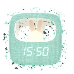 De wekker is tevens voorzien van een superschattig nachtlampje in de vorm van een lief, klein konijntje. De wekker is voorzien van een oplaadbare accu (micro USB, 5V) waarmee je tot 14 uur lang voorzien bent van de juiste tijd en een kalmerend lampje. Voldoende tijd dus voor de langste dutjes!