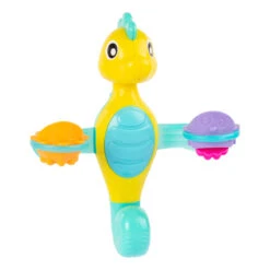 Ontdek een wereld vol waterpret met de Fountains of Fun Fontein van Playgro! Druk op het buikje van het zeepaardje en zie hoe het water uit de mond stroomt en langs de armen loopt, waardoor de propellers in de vrolijke badvriendjes gaan ronddraaien. Je kindje kan de badvriendjes ook uit de armen van het zeepaardje halen en er los mee spelen!