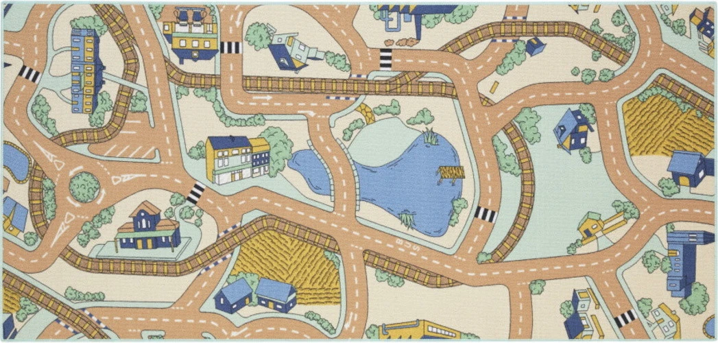 Dit vloerkleed is ideaal voor als je kindje begint met rollen en spelen op de vloer. Is je kleine gek op huisjes, wegen en treinen? Dan is dit vloerkleed helemaal perfect! Het Railroads kleed staat namelijk in het tegen van wegen en treinsporen. De onderzijde van het kleed heeft een anti-slip laag van latex, waardoor het kleed niet wegglijdt op een gladde vloer. Dat is wel zo veilig! Tevens heeft het kleed daardoor een isolerende werking. Hij is onderhoudsvriendelijk en heeft door zijn hoge kwaliteit garen een lange levensduur.